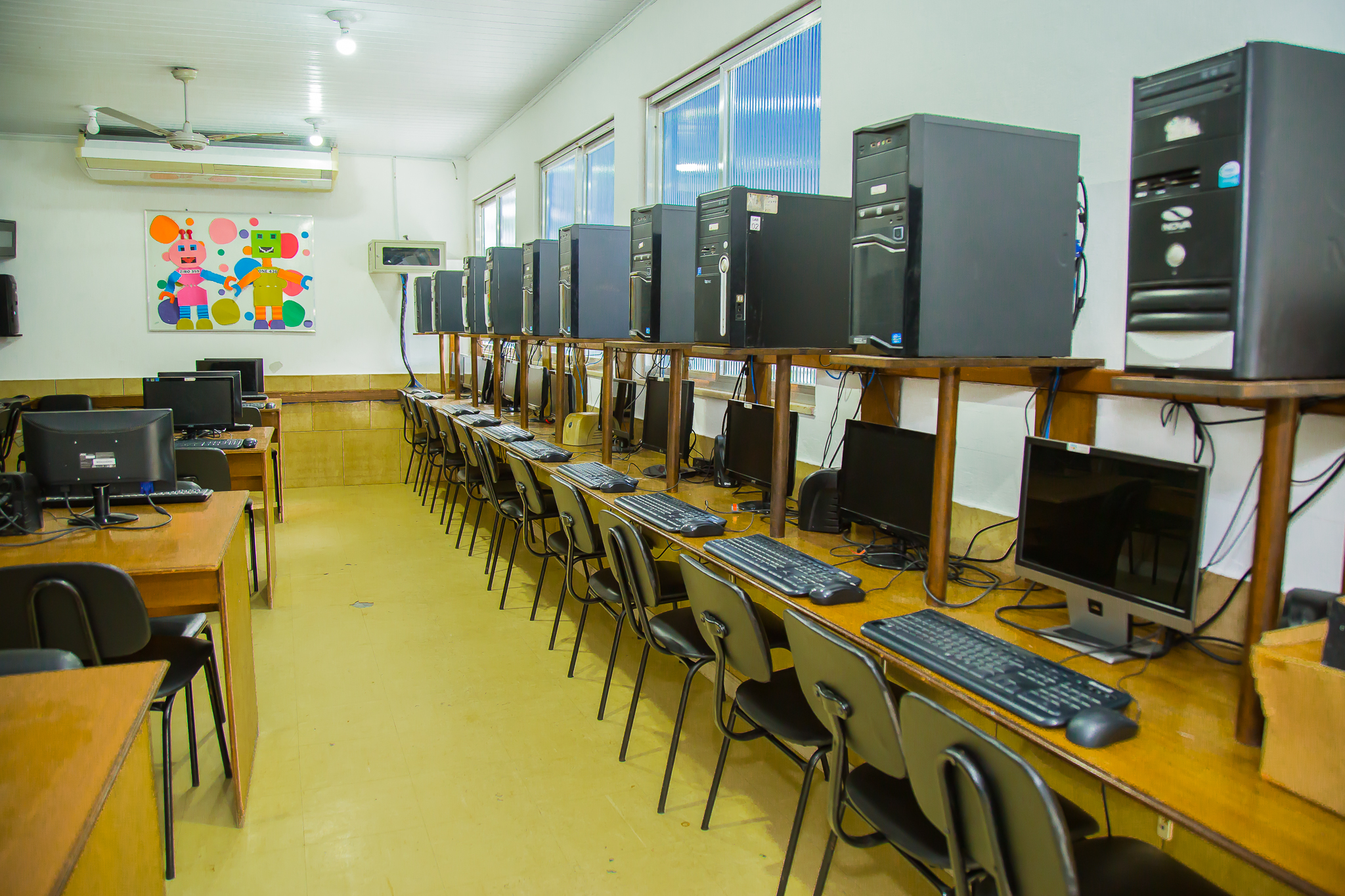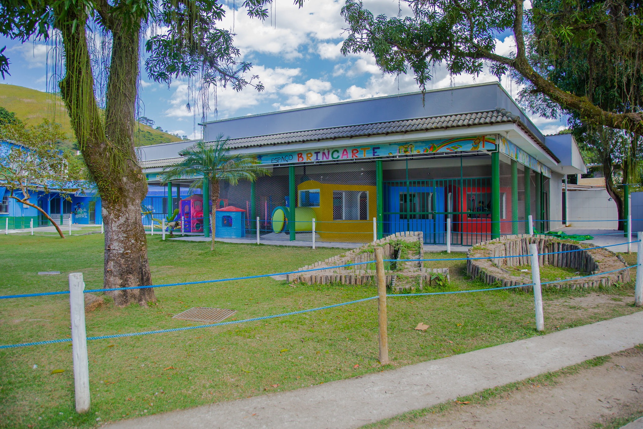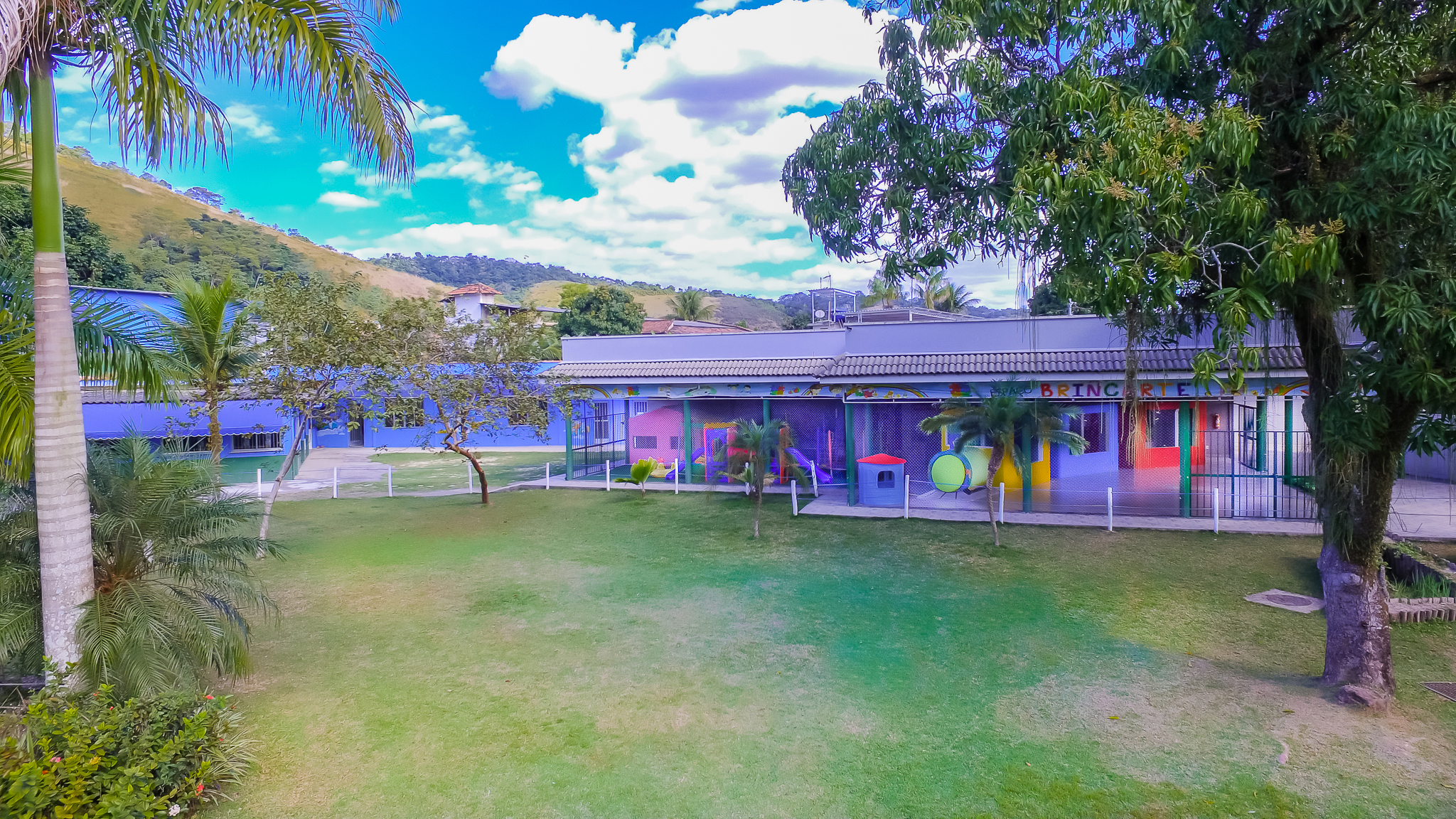 Nossa unidade escolar está dividida em três prédios com salas de aula arejadas, climatizadas e com mobiliário adequado. As salas destinadas a Educação Infantil possuem banheiros internos. A escola dispõe de ampla área verde, campo de futebol, quadra poliesportiva, vestiários, brinquedoteca, ateliê, sala multimídia, laboratório multiuso, cozinha pedagógica, Sala de Recursos e sala exclusiva para aulas de ballet.